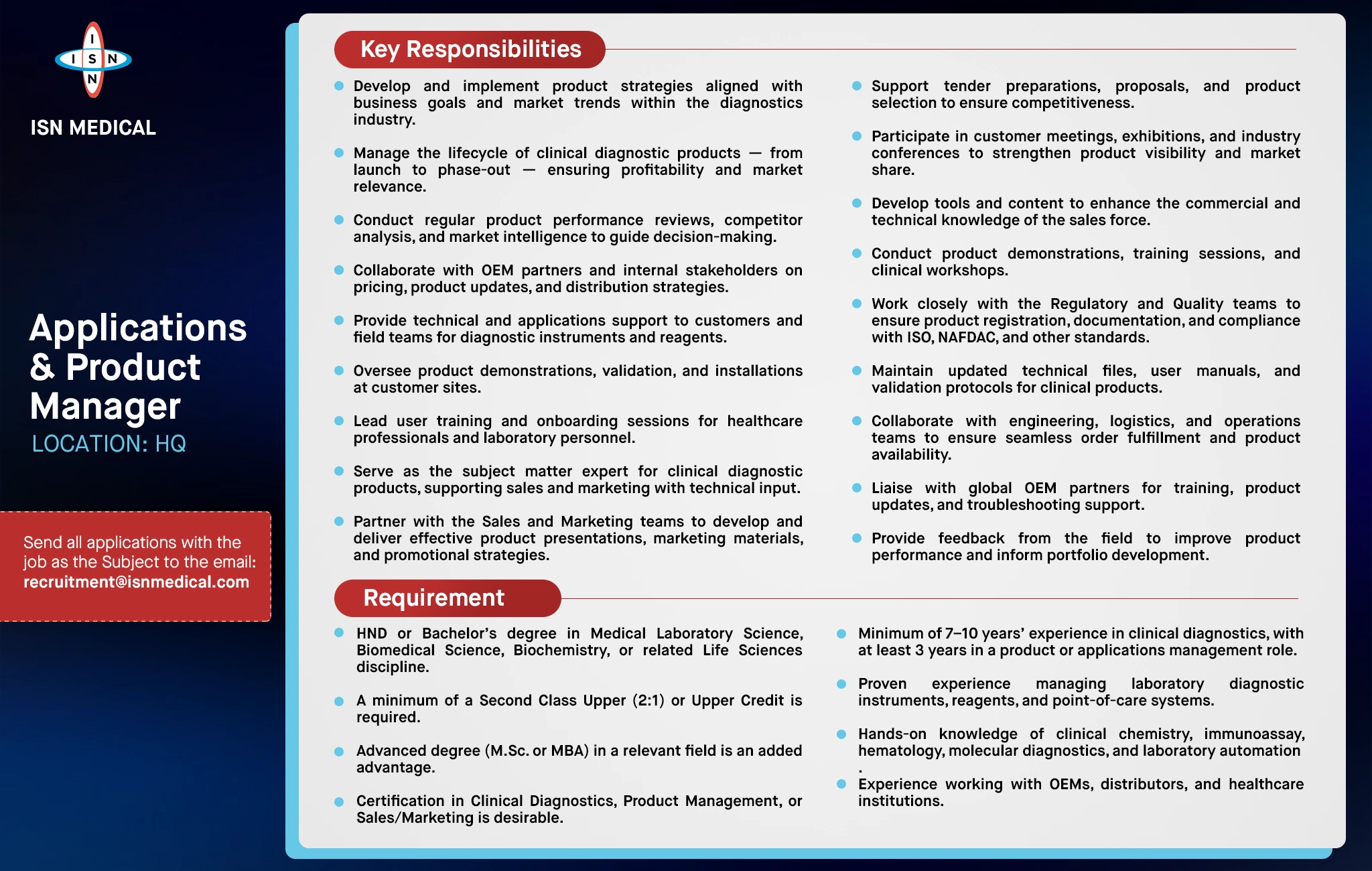 Applications and Product Manager