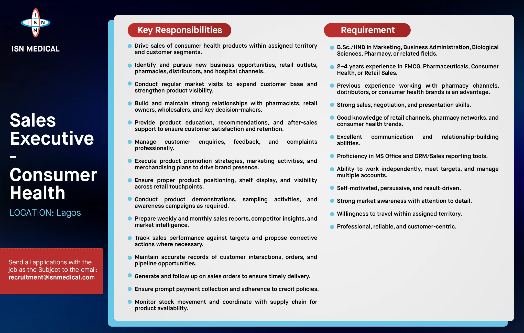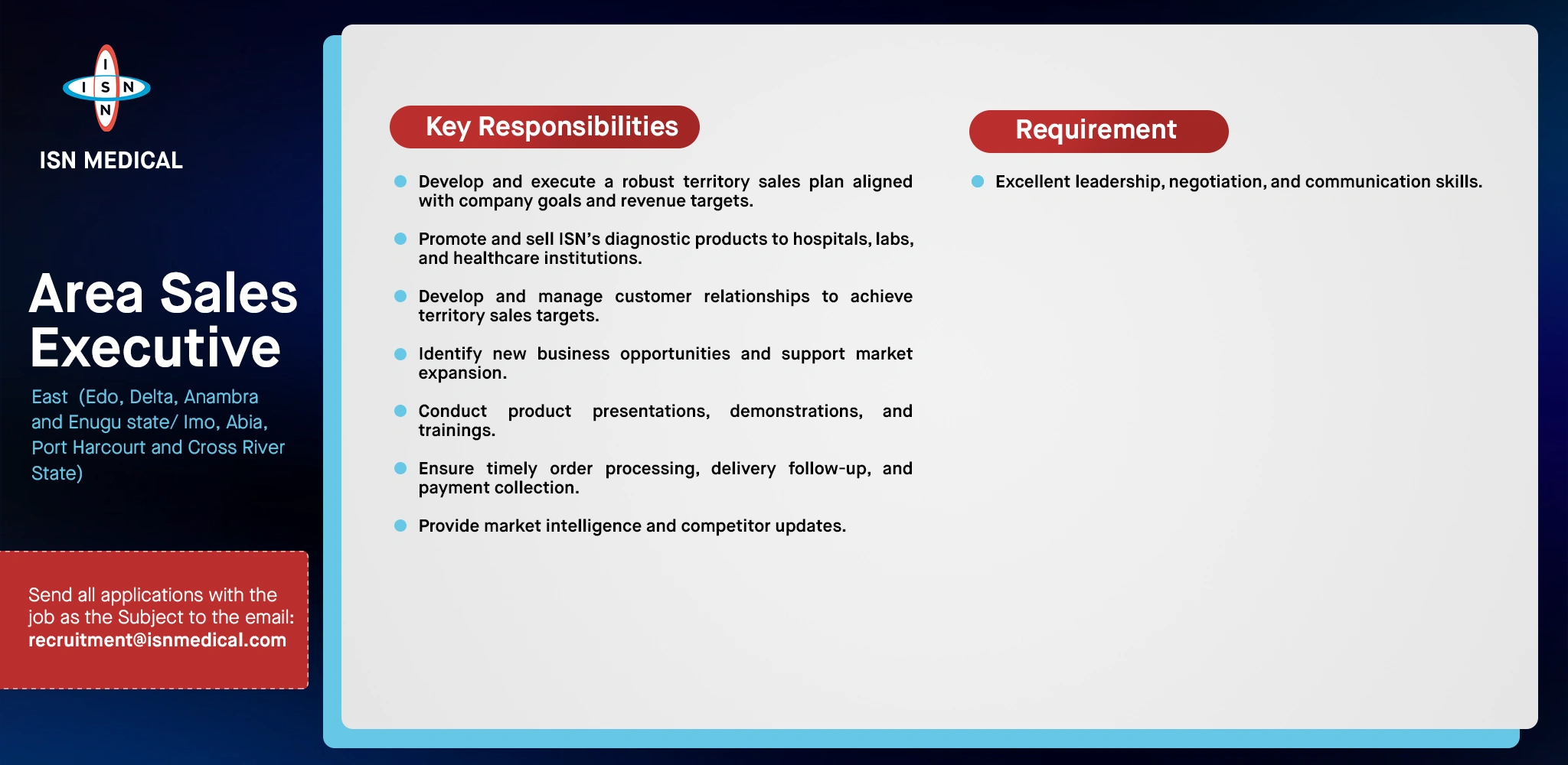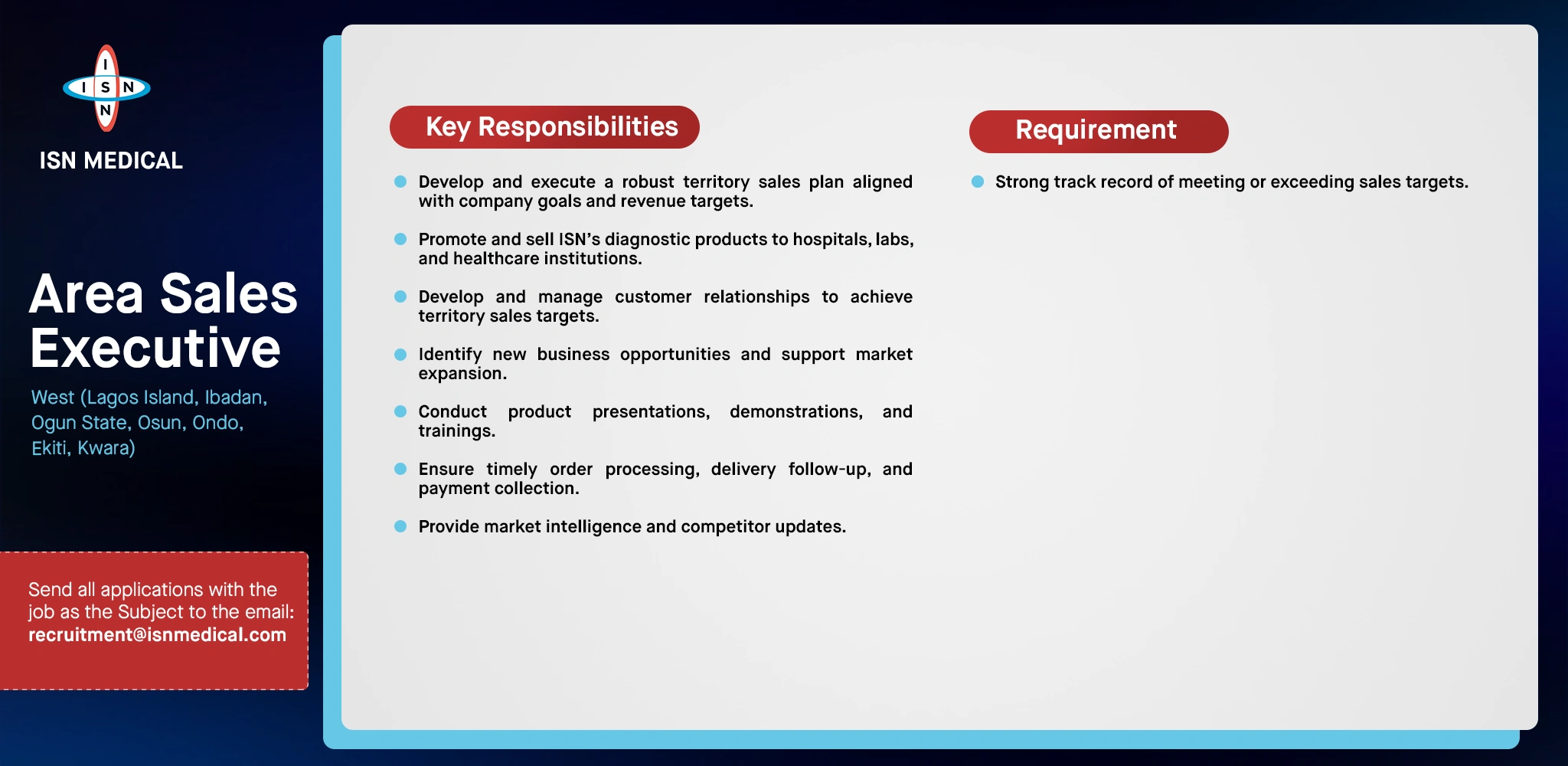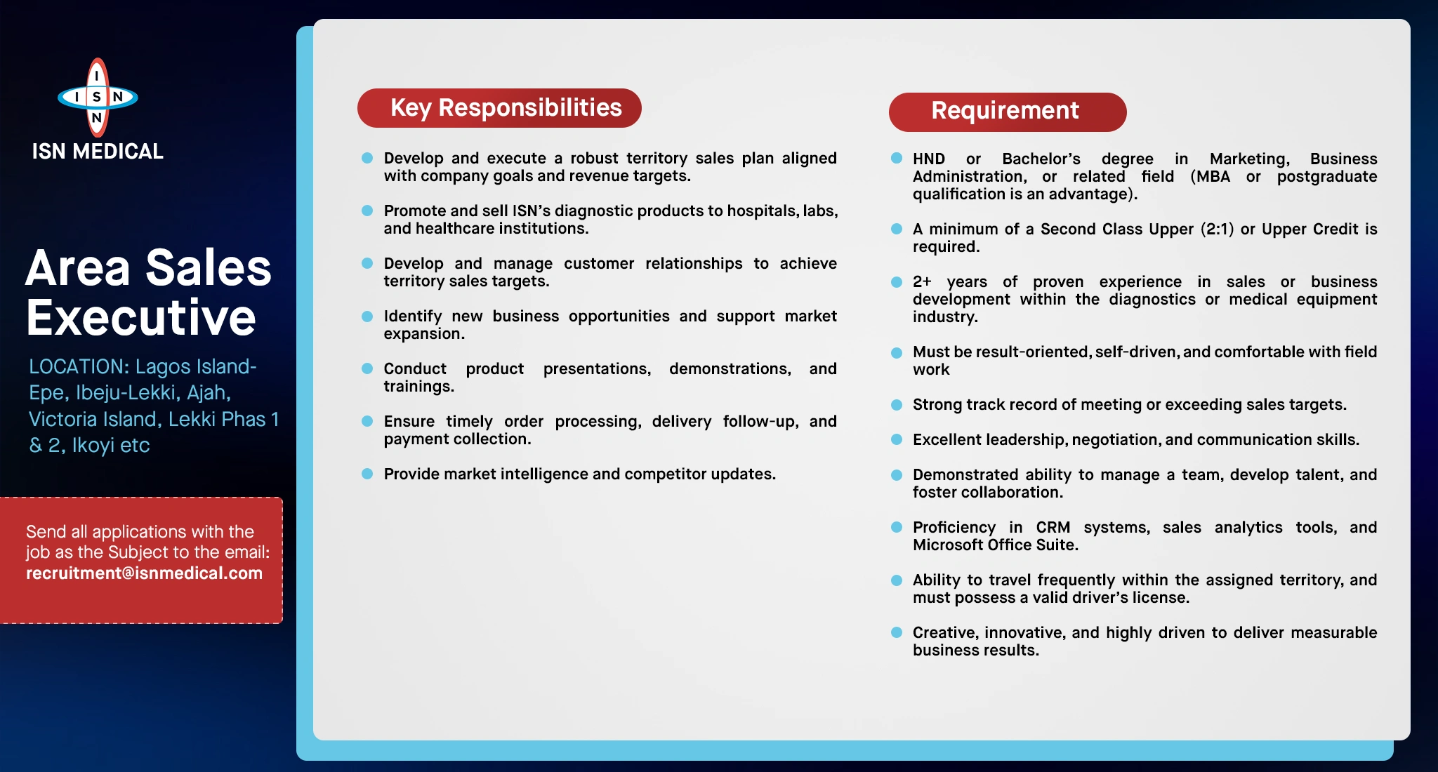 Area Sales Executive North West & East (Jigawa, Kaduna, Kano, Katsina, Kebbi, Sokoto, and Zamfara, Adamawa, Bauchi, Borno, Gombe, Taraba, and Yobe)