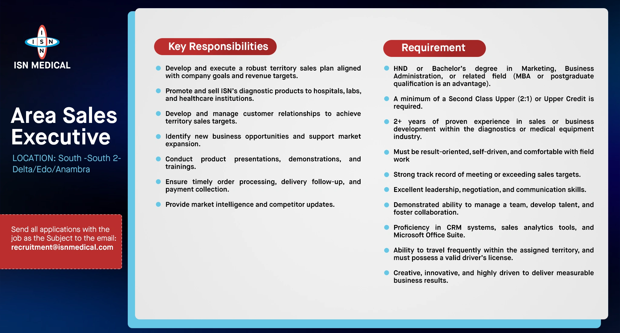 Area Sales Executive (South -South 2- Delta/Edo/Anambra)