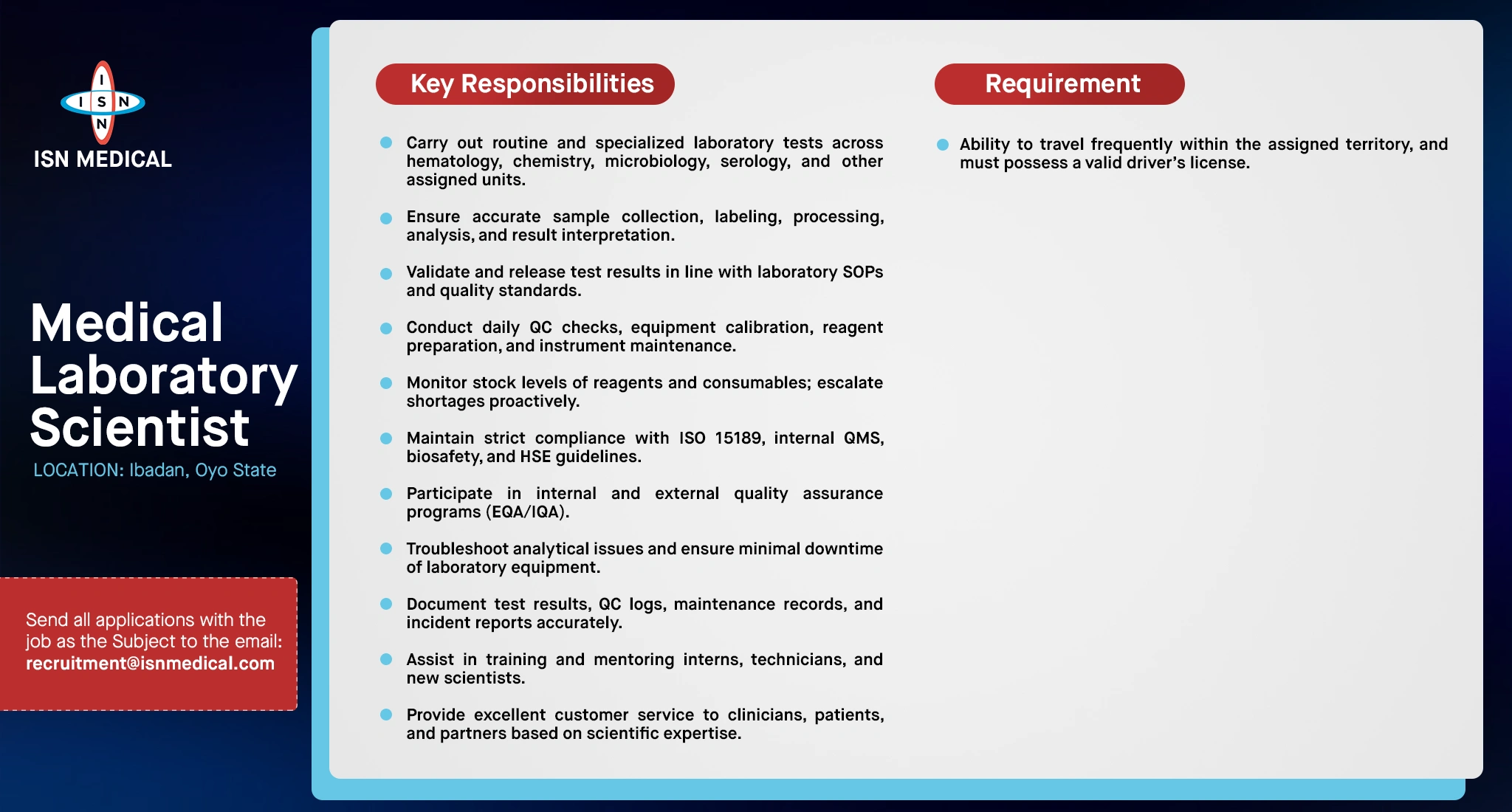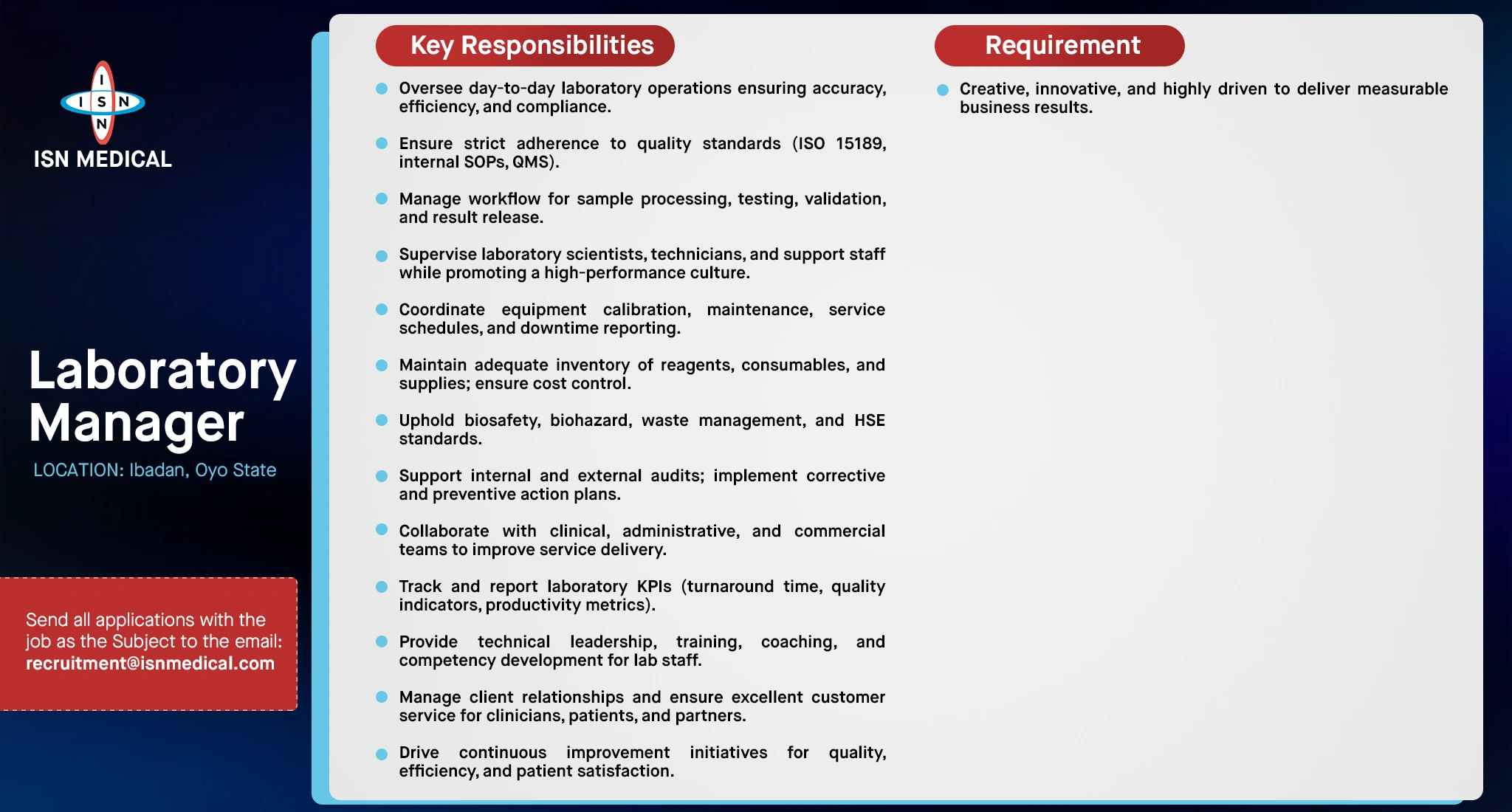 At ISN, we are motivated by a desire to improve the quality of laboratory medicine and healthcare results. Our aspiration to be the best in all the areas we operate in drives our modern, fast-paced, and ever-improving work environment.