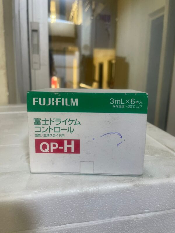 FDC QPM H EX (3 mL vial) — Fujifilm quality control material (High level) for use with Fujifilm NX600 dry chemistry analysers. Multi-analyte control serum for verifying the accuracy of clinical chemistry measurements across multiple parameters.