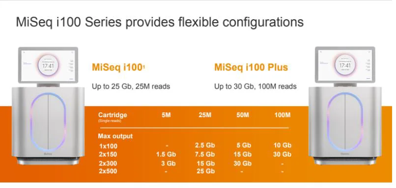 The Miseq i100 series offers a three-step setup, onboard cluster generation and onboard denaturation; no post-run washes; sample-to-analysis workflows with onboard DRAGENTM analysis